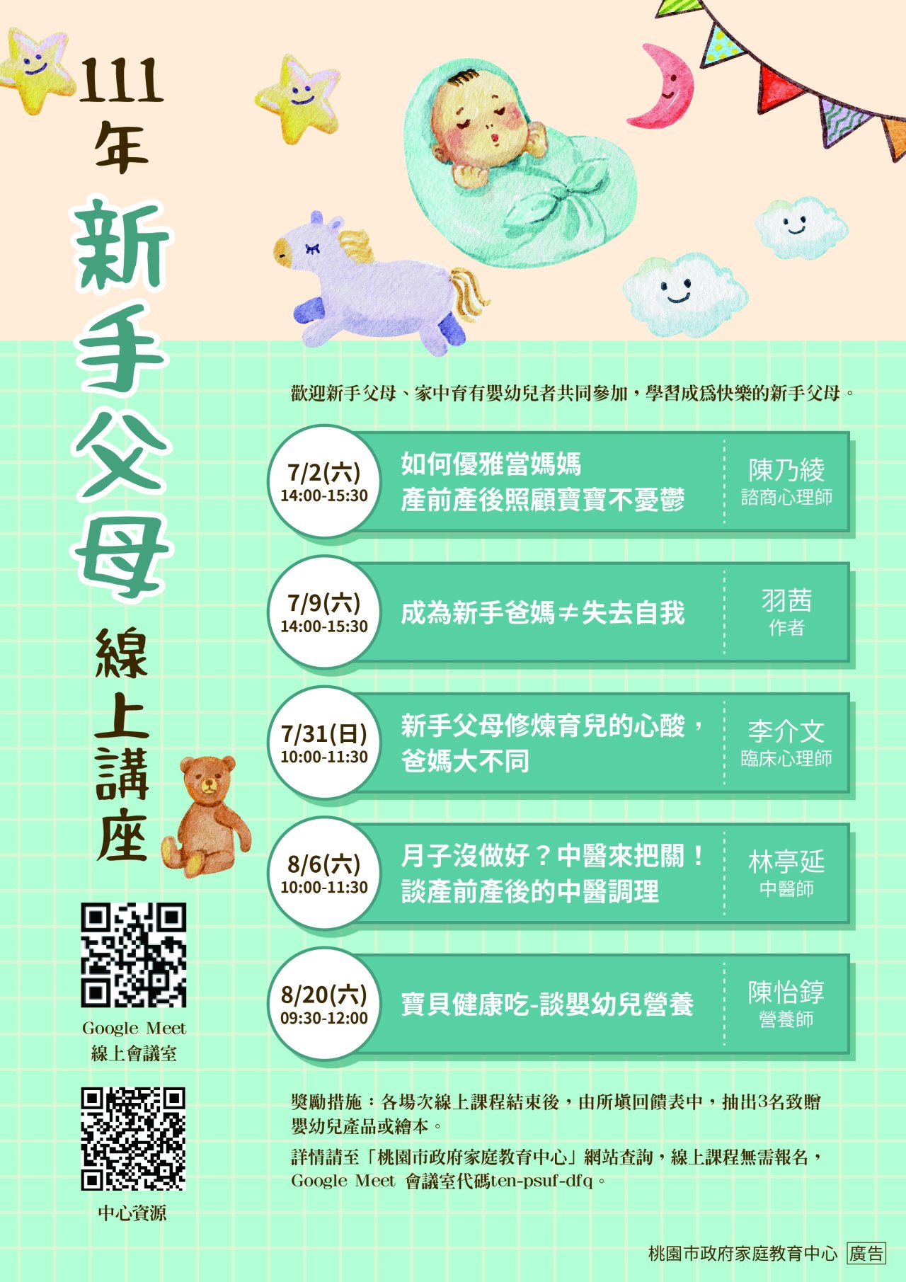 轉知家庭教育中心辦理之「111年新手父母線上講座」海報1份