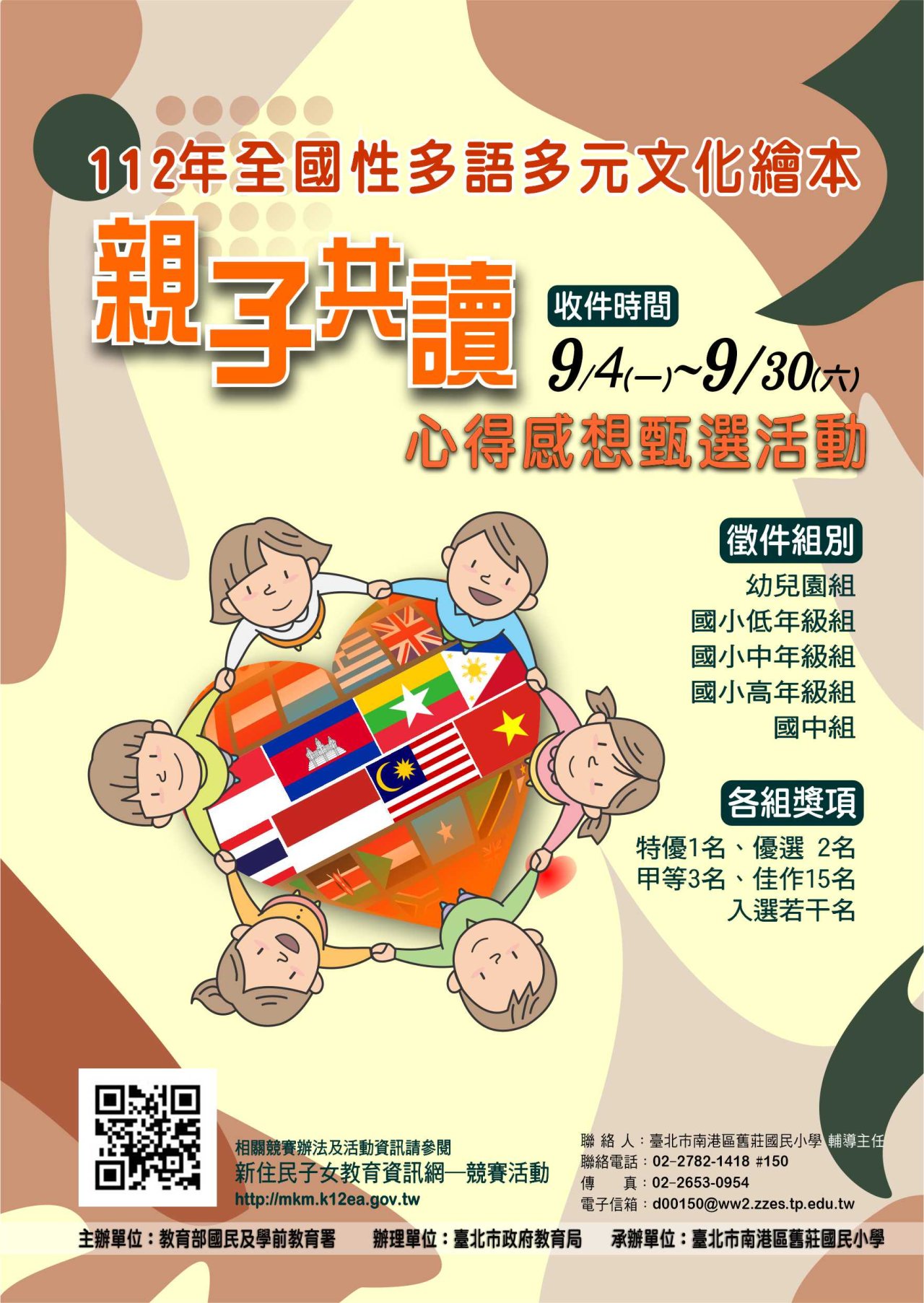 | 七、 | 檢附112年度全國性多語多元文化繪本親子共讀心得感想甄選活動計畫及電子海報各1份。 |