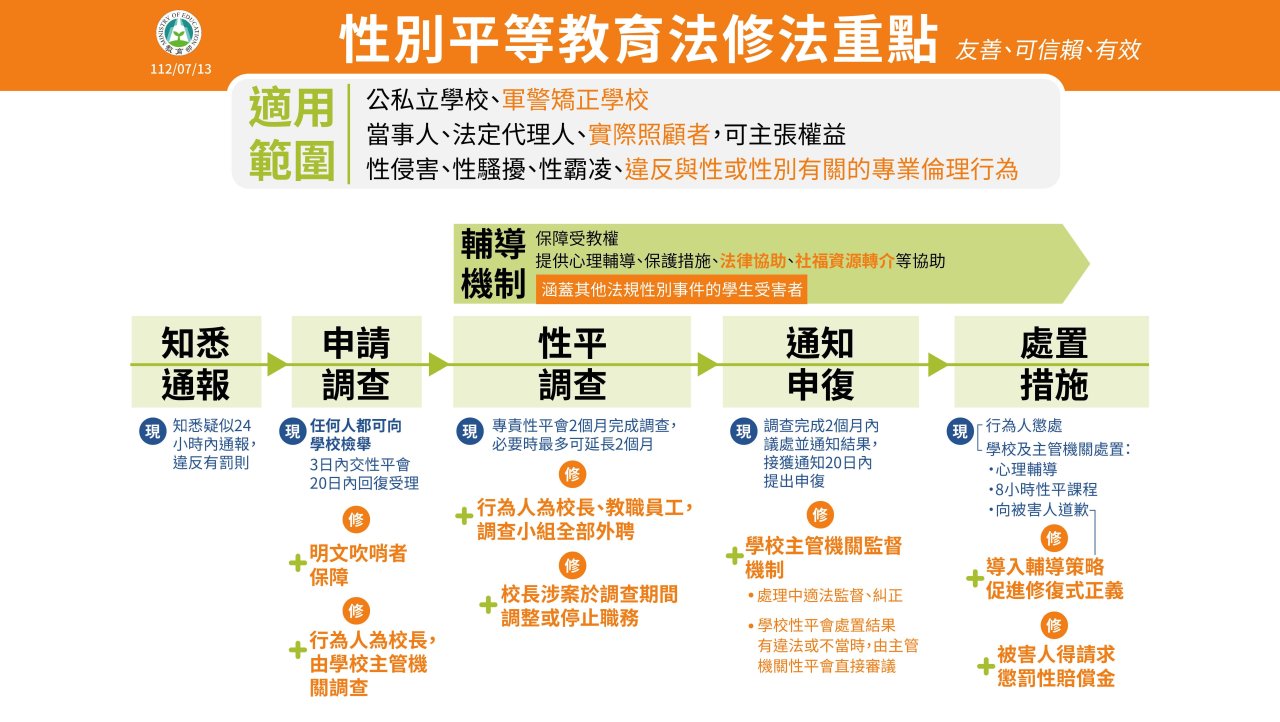 三、 | 旨揭性平法修法重點,教育部業於性別平等教育全球資訊網(https://www.gender.edu.tw/web/index.php/home)提供相關宣導單張及相關簡報,請於宣導時善加利用。 |