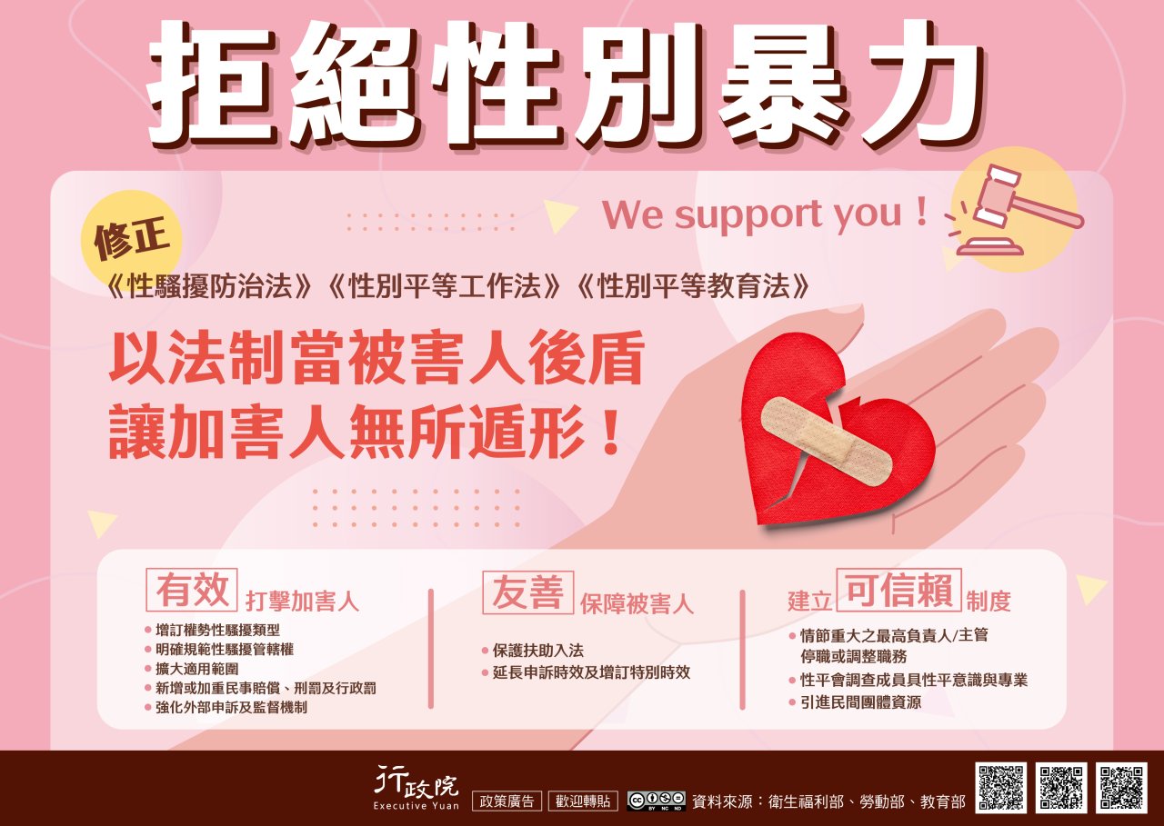 為建立有效、友善、可信賴的性騷防治制度,政府推動性 平三法修正,並於112年7月31日經立法院三讀通過,行政院特製旨揭說明資料。