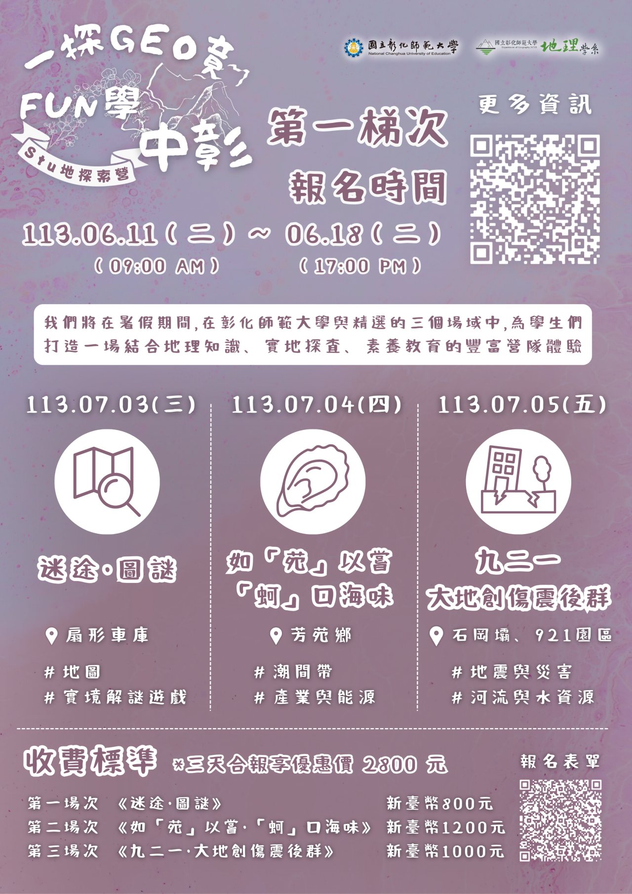 | (一) | 第一梯次:113年06月11日(二) 09:00至113年06月18日(二) 17:00(額滿為止) |