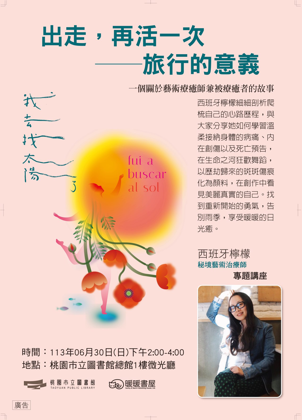 桃園市立圖書館「秘境藝術治療師 西班牙檸檬專題講座 出走,再活一次 旅行的意義」