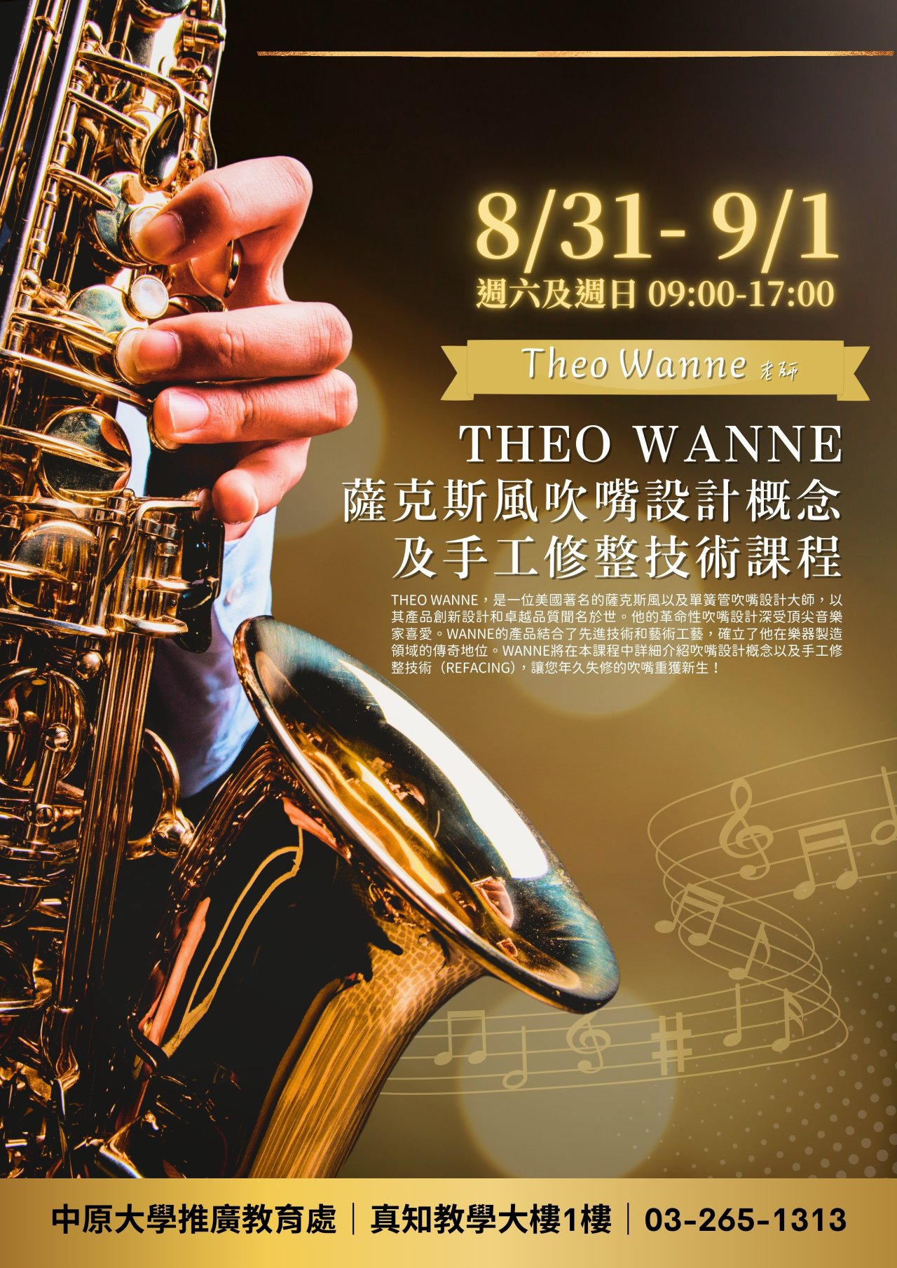 轉知~「Theo Wanne薩克斯風吹嘴設計概念及手工修整技術課程」招生海報1份