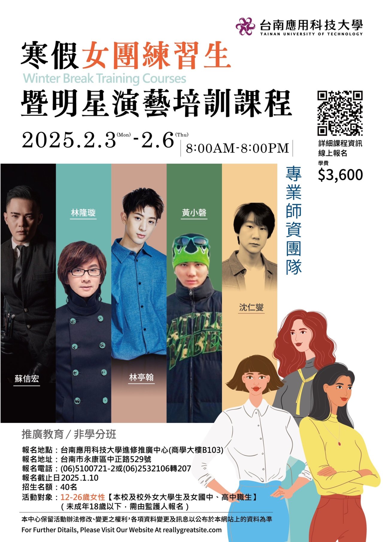 檢送台南應用科技大學流行音樂系與進修推廣中心辦理「寒假女團練習生暨明星演藝培訓課程」,歡迎學生踴躍報名參加