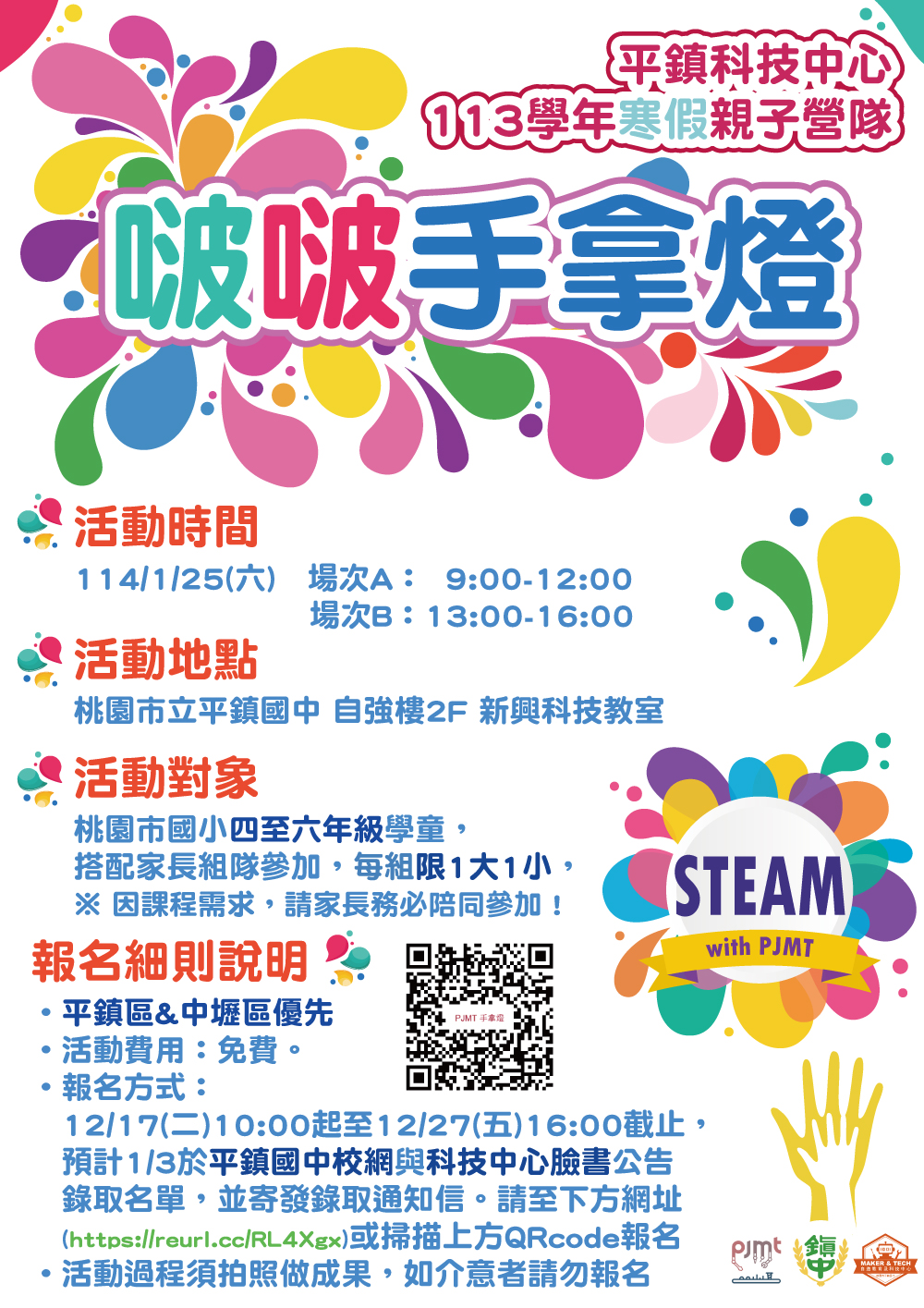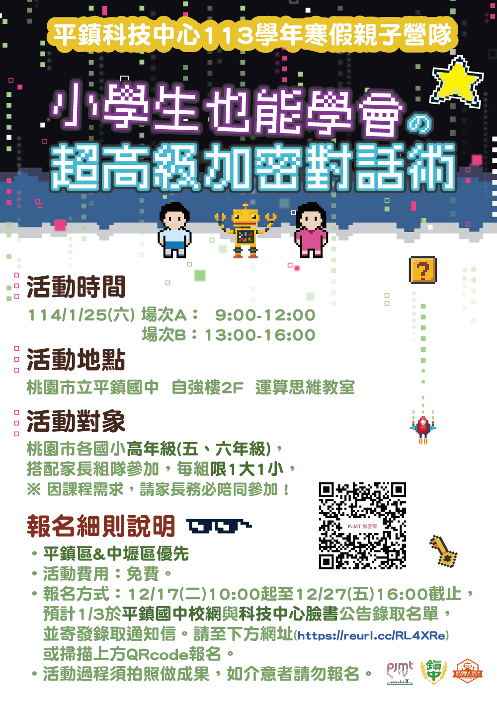 轉知:平鎮國中辦理平鎮自造教育及科技中心113學年寒假國小親子營隊。