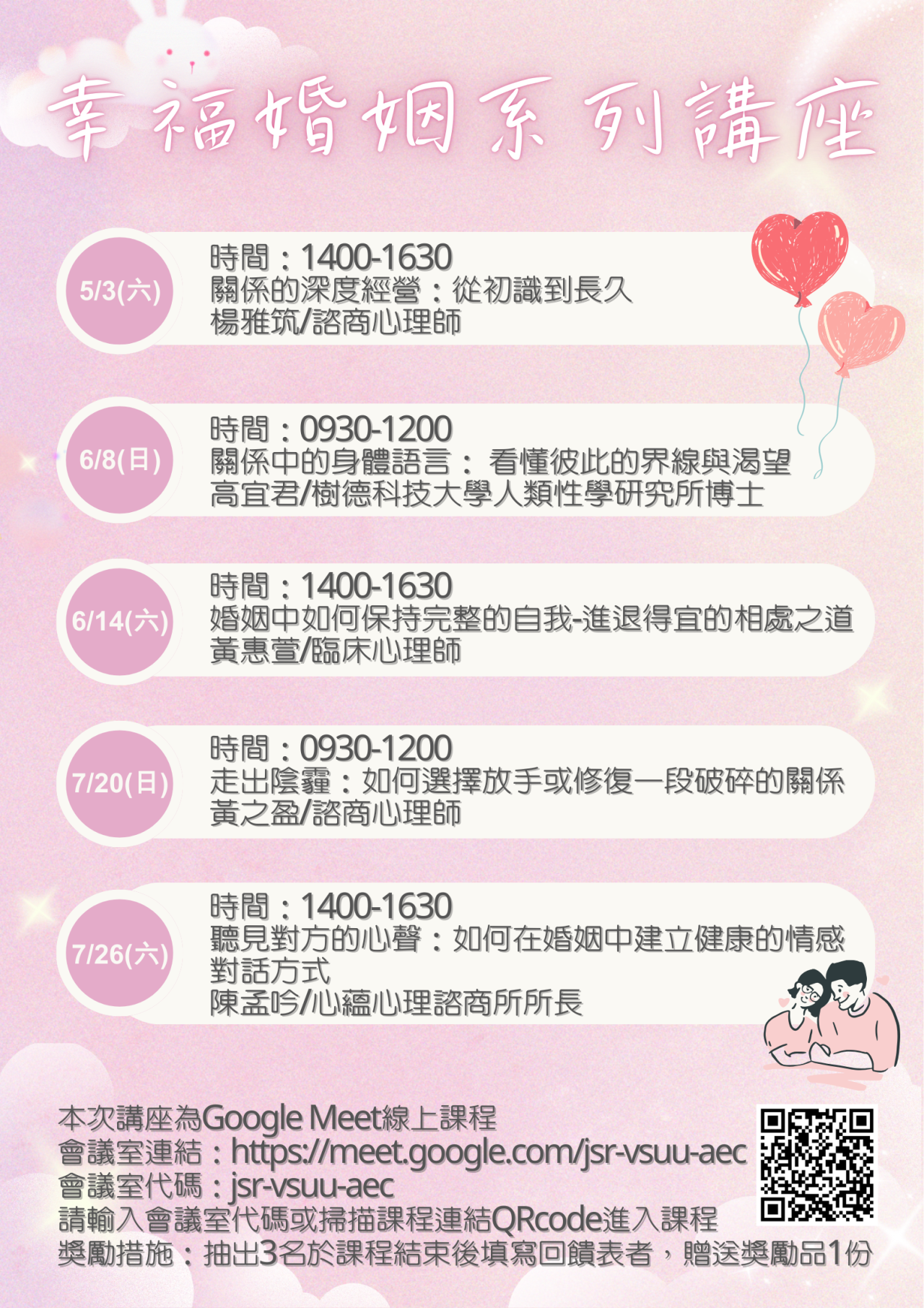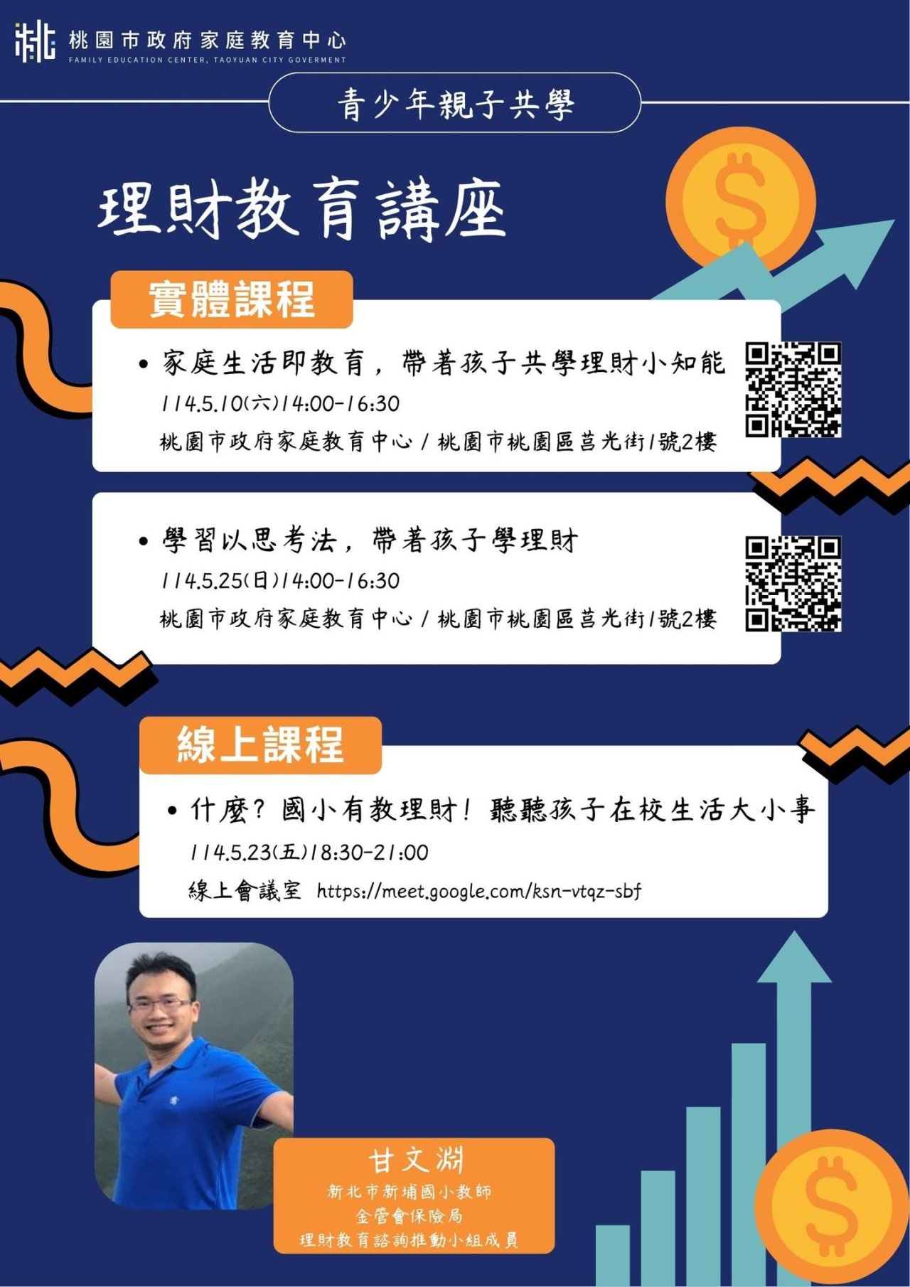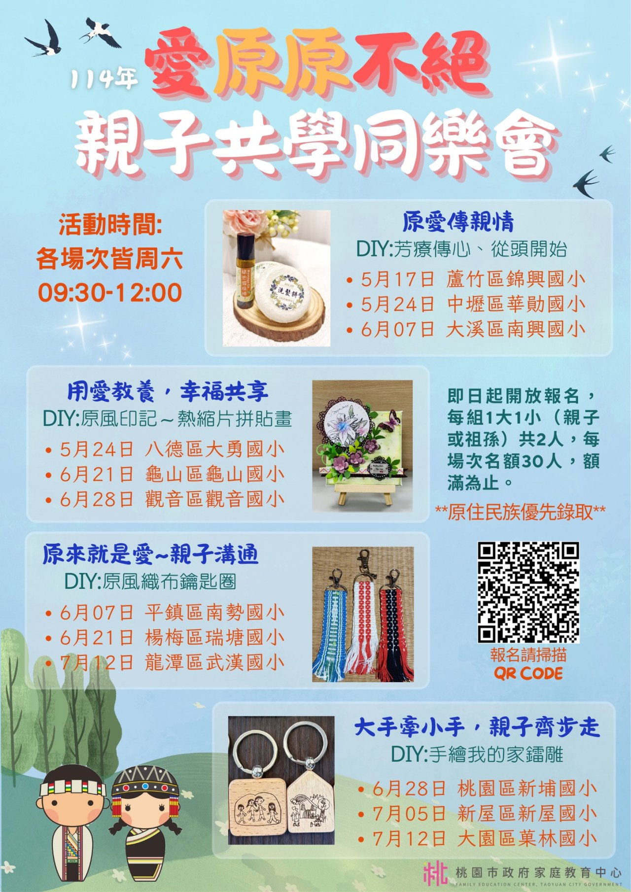 轉知~家庭教育中心「小桃家5月課程資訊」、「親子理財教育講座」、「愛『原原』不絕-親子共學同樂會」、「覺察・連結・愛:開啟正念教養的幸福旅程」、「幸福婚姻系列講座」海報各1份。