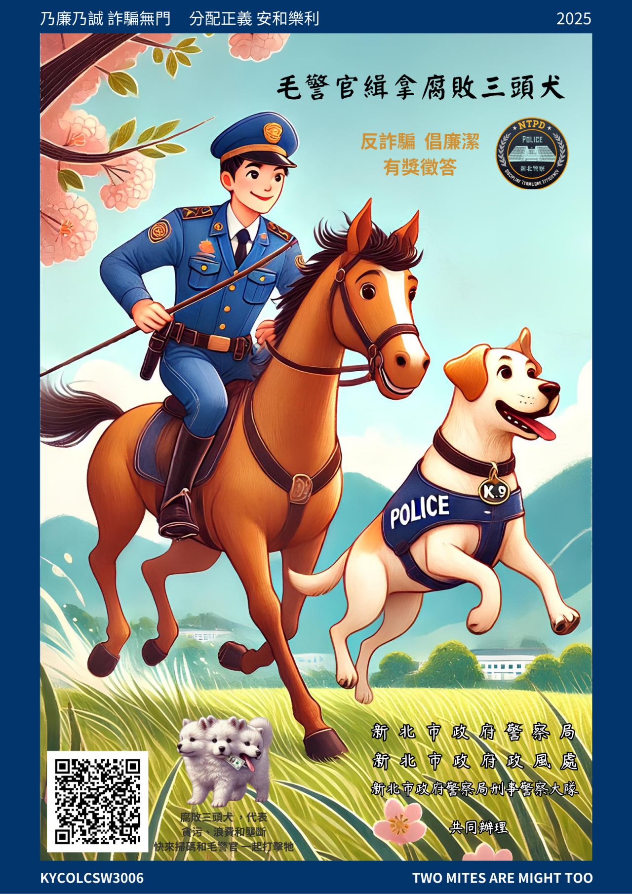 轉知教育部國民及學前教育署有關新北市政府警察局辦理「『毛警官緝拿腐敗三頭犬』反詐騙倡廉潔有獎徵答活動」