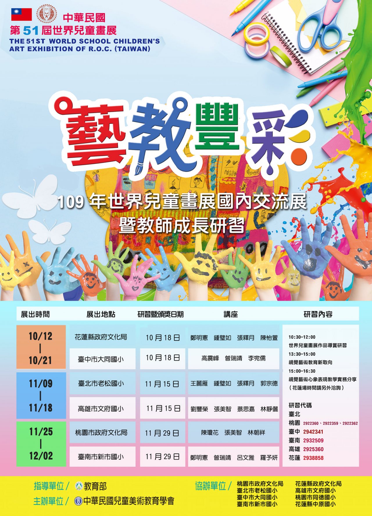 轉知 中華民國兒童美術教育學會辦理「109年世界兒童畫展國內交流展暨教師進修研習」相關訊息