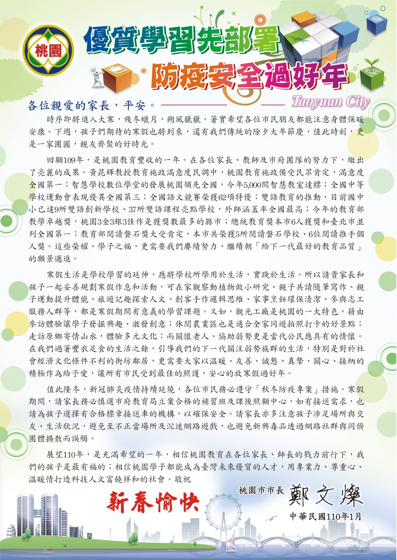 109學年度寒假「市長給家長的一封信」