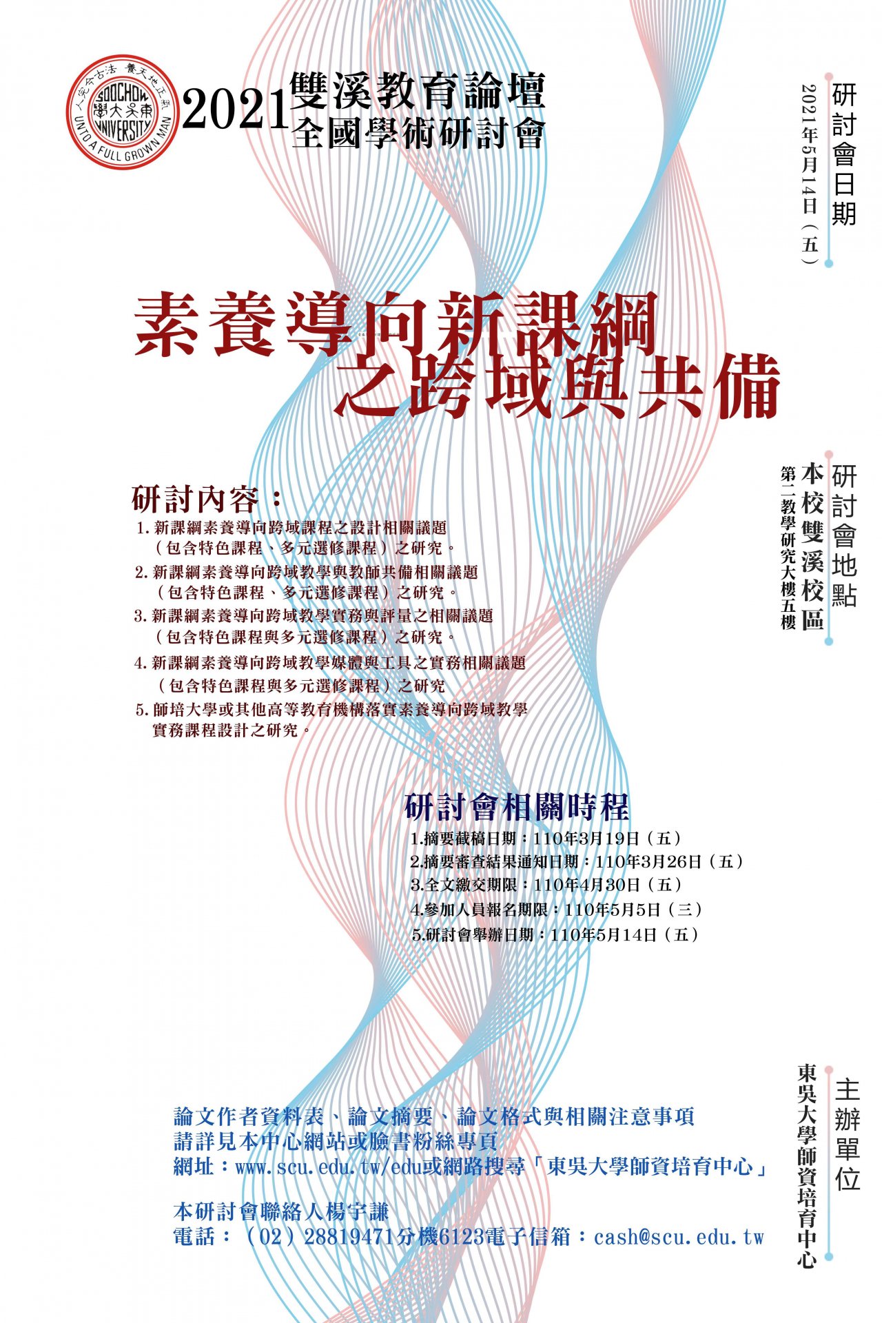 轉知東吳大學師資培育中心辦理「2021雙溪教育論壇全國學術研討會」徵稿相關資料