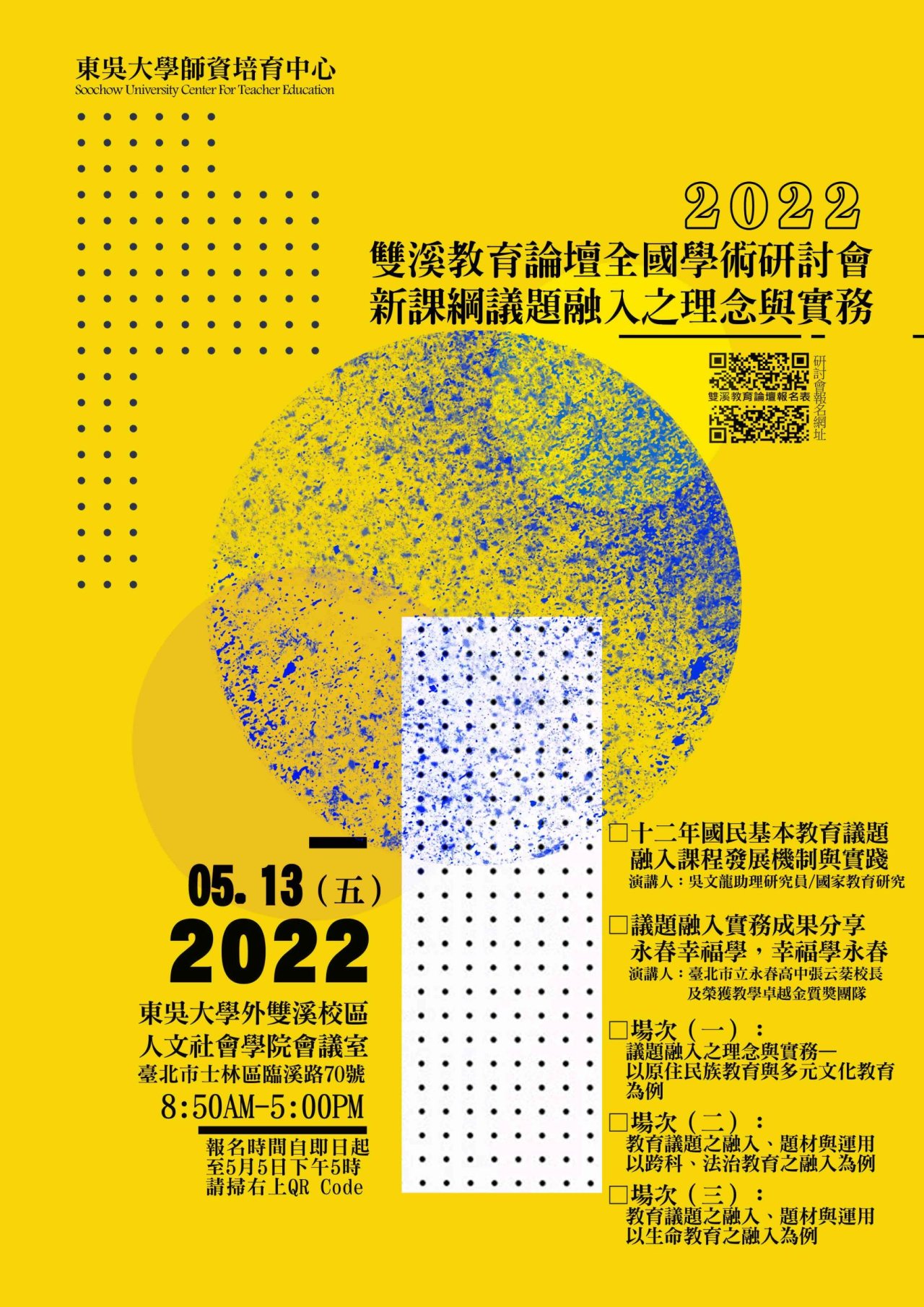 轉知東吳大學師資培育中心辦理「2022雙溪教育論壇學術研討會」