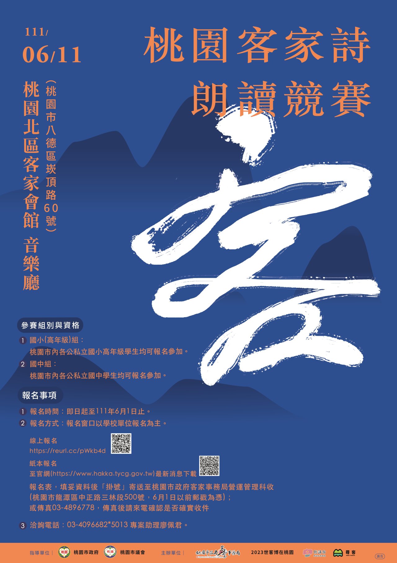 5.詳情請至桃園市政府客家事務局網站(https://reurl.cc/Gxoy7y)/最新消息查詢。
