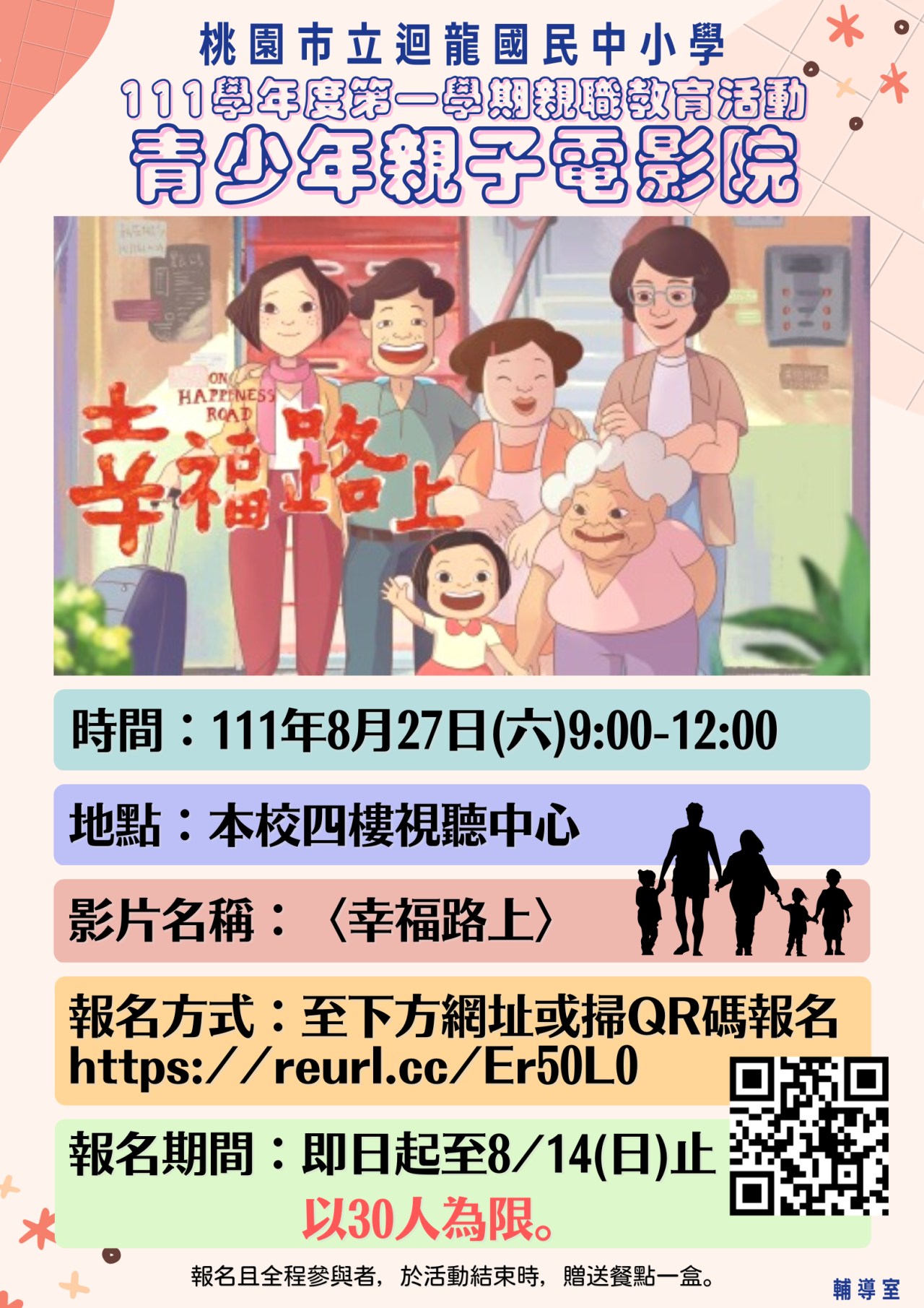 桃園市立迴龍國民中小學111年度青少年親子電影院
