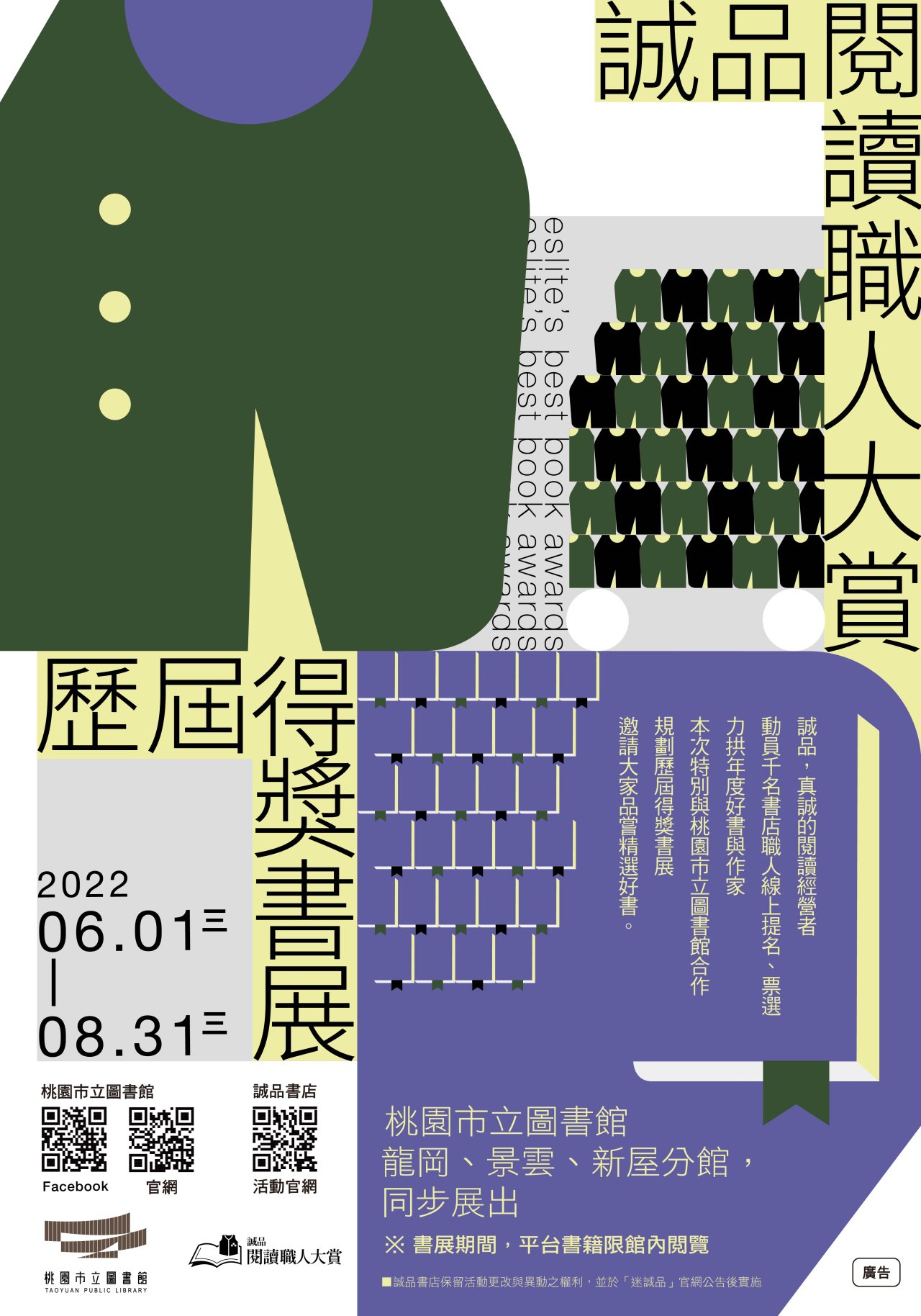 轉知桃園市立圖書館於111年6月1日至8月31日辦理「2022誠品閱讀職人大賞」得獎書展及作家講座系列活動共3場