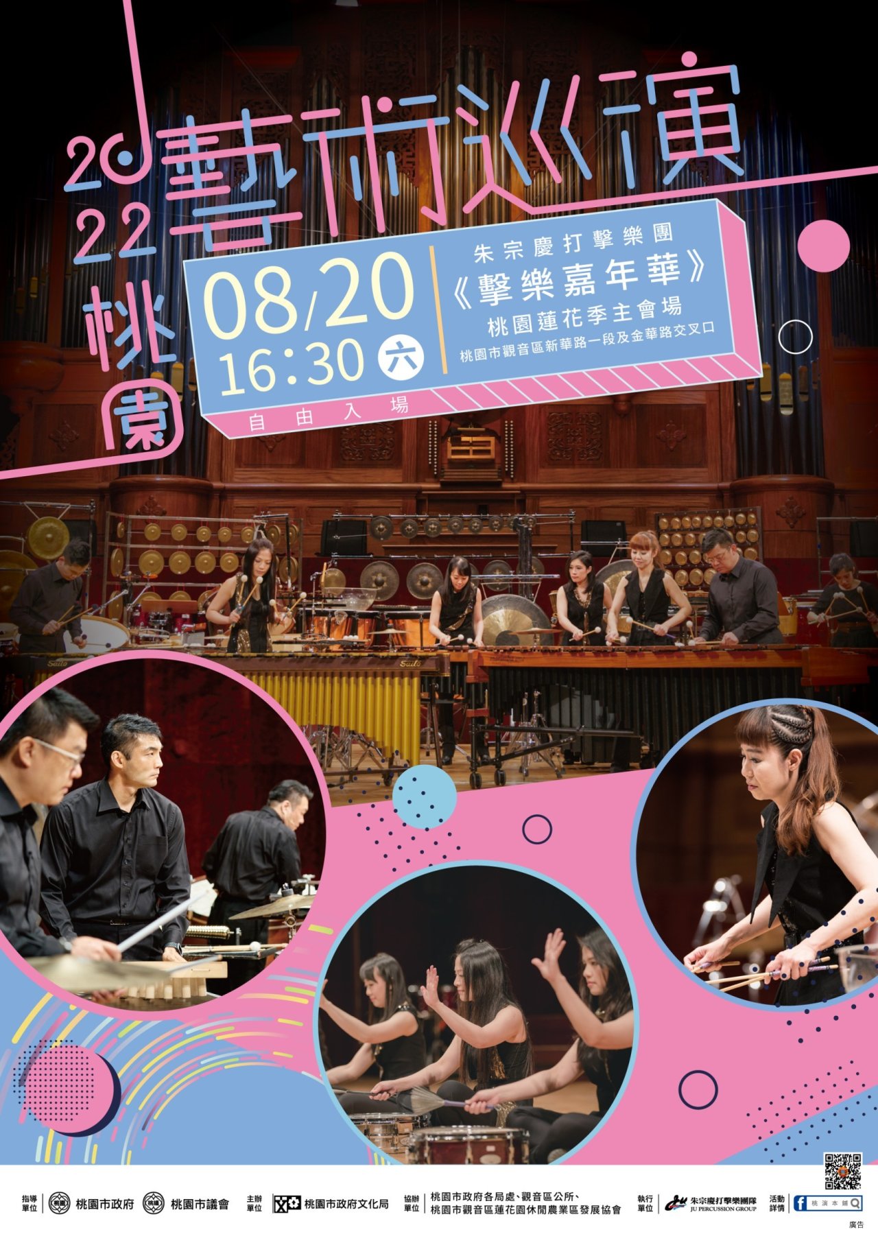 111年8月20日(星期六)下午4:30歡迎您闔家到2022桃園蓮花季主會場欣賞朱宗慶打擊樂團《擊樂嘉年華》精彩演出!