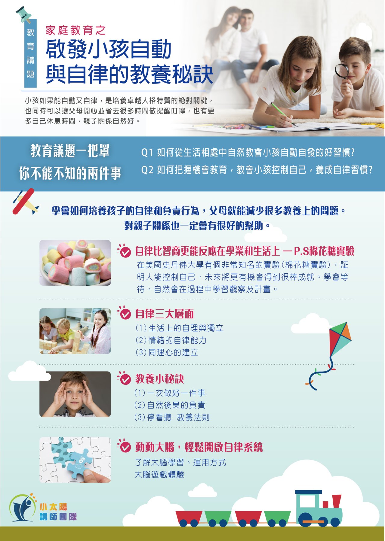 五、 | 講題:啟發小孩自動與自律的教養秘訣 。 |