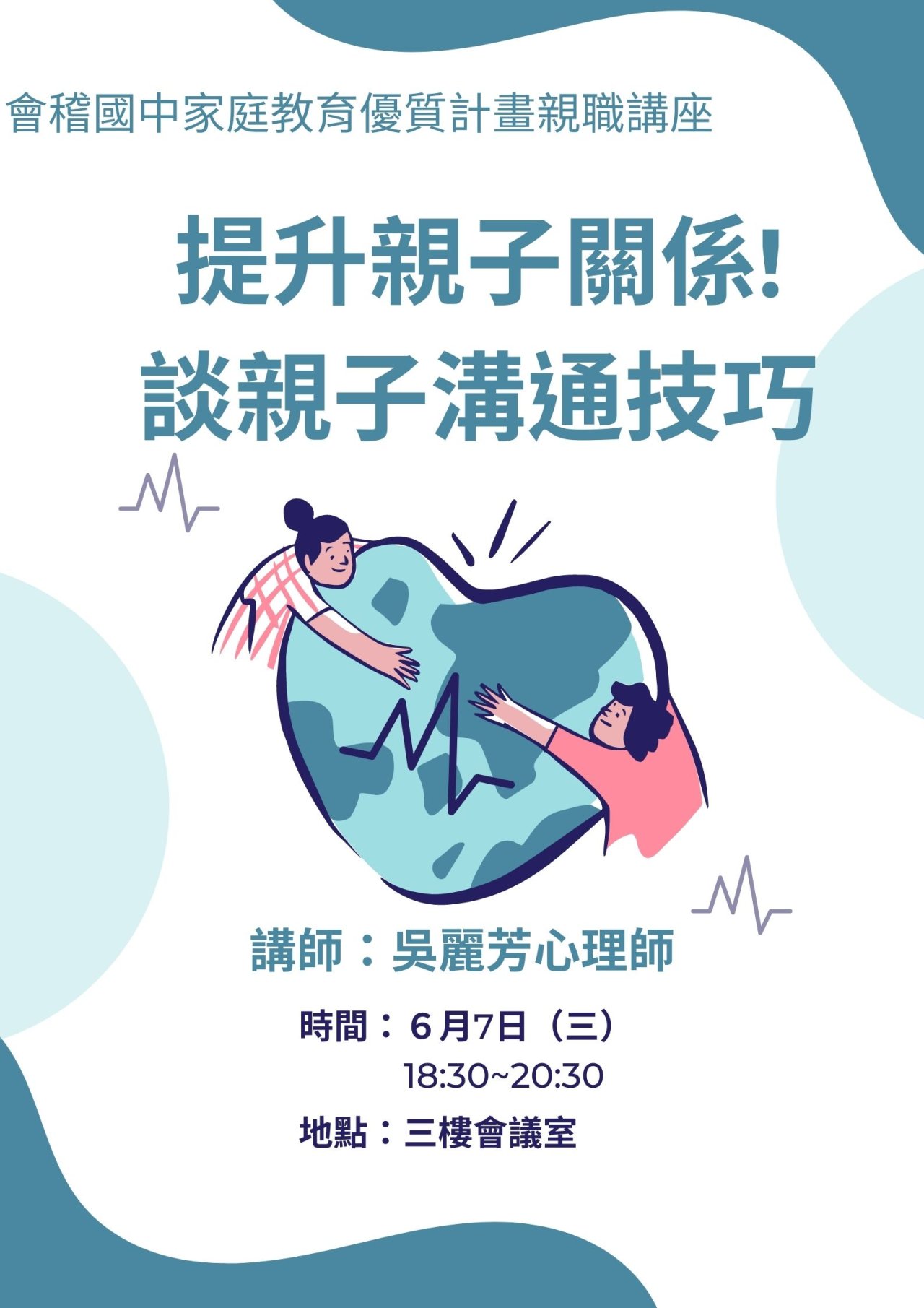 會稽國中辦理「桃園市政府家庭教育中心112年度學校家庭教育優質化補助計畫」親職講座
