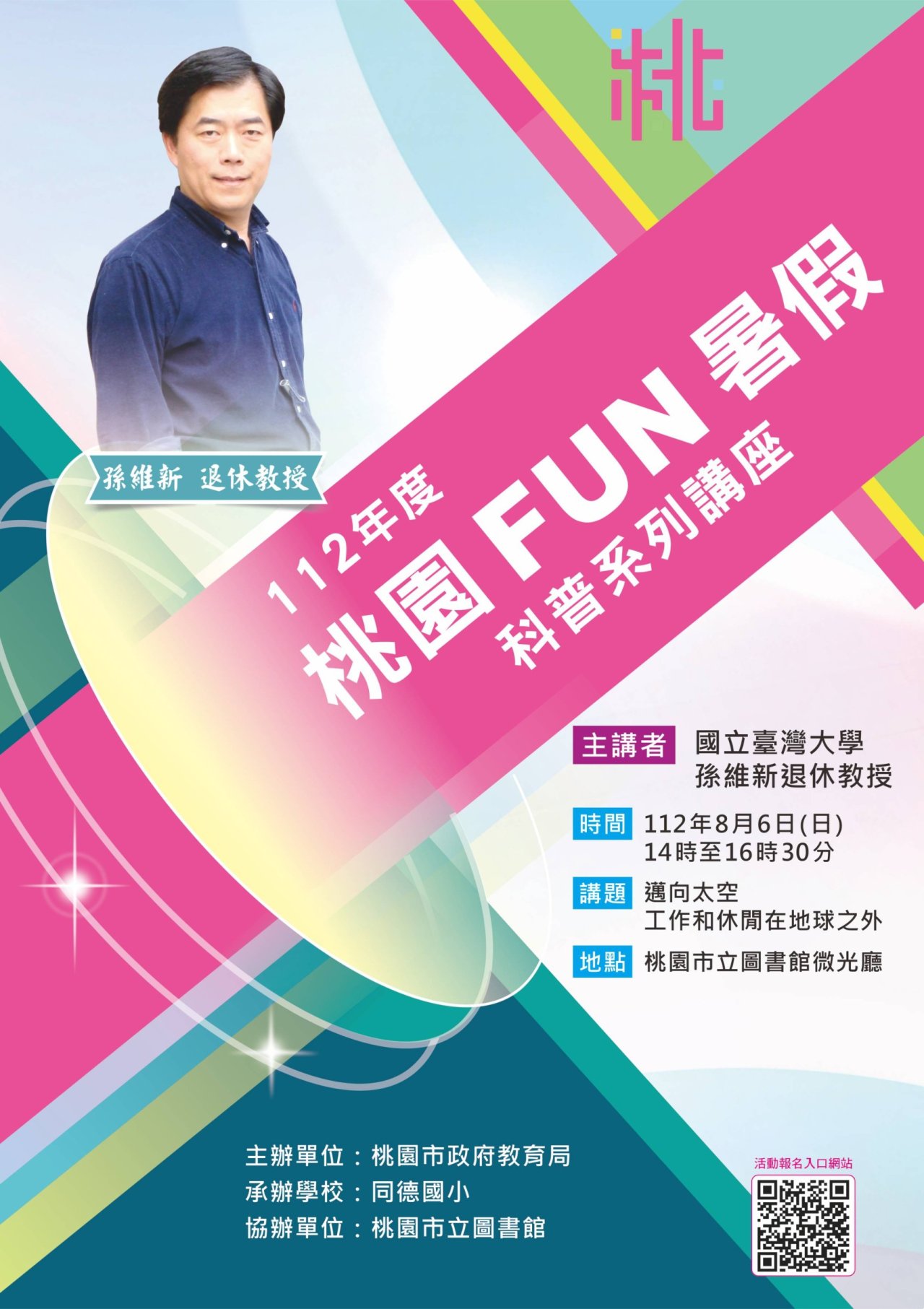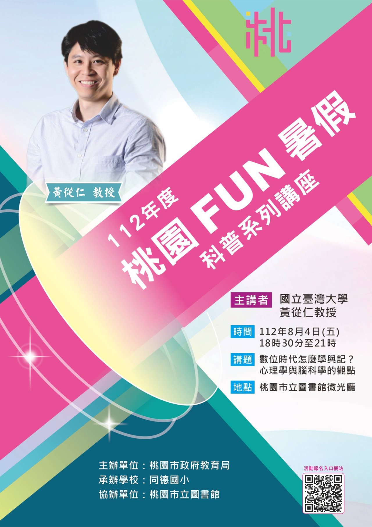 轉知有關桃園市2023桃園fun暑假 112年度暑期科普講座,請貴校協助公告周知並鼓勵學生、家長及教師踴躍報名參加